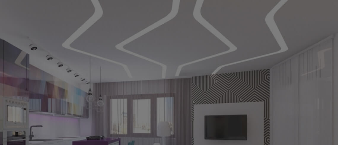 Кроме того, есть разные технологии установки натяжного потолка. Это и парящие конструкции, и бесшовные, и бесщелевые. Есть системы встроенного и скрытого освещения (круглые и квадратные светильники).