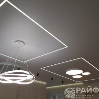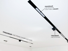 Кроме того, есть разные технологии установки натяжного потолка. Это и парящие конструкции, и бесшовные, и бесщелевые. Есть системы встроенного и скрытого освещения (круглые и квадратные светильники).